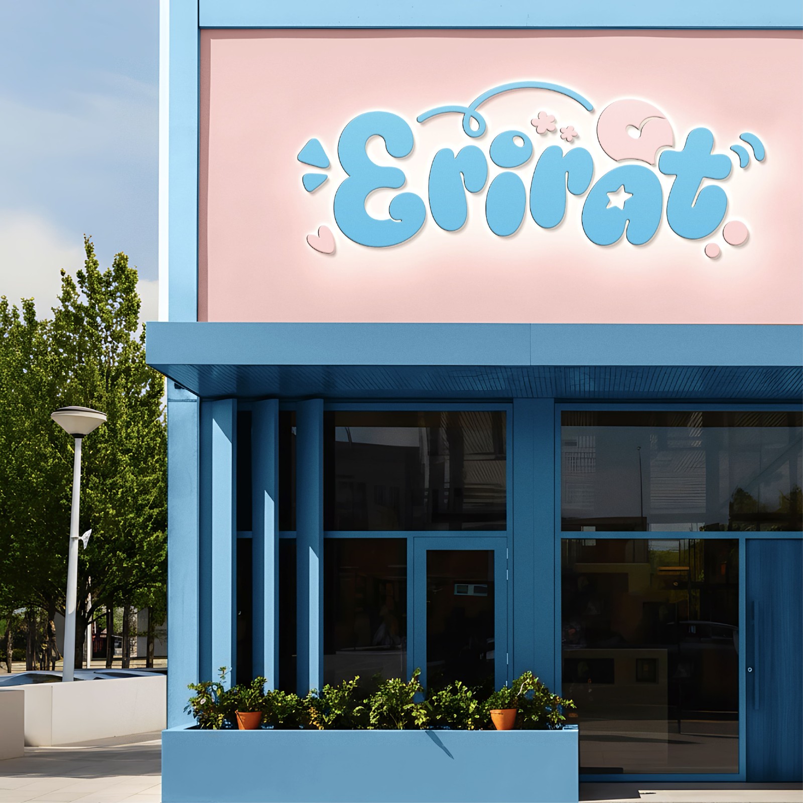 Thay vì những đường nét cứng nhắc, font chữ của Erirat được bo tròn mềm mại gợi liên tưởng đến lớp bánh bồng bềnh vừa ra lò. Điểm nhấn đắt giá chính là hình ảnh chiếc bánh Bagel được lồng ghép khéo léo, không chỉ là lời khẳng định về sự thủ công mà còn là cái chạm của sự nguyên bản. Từng nét uốn lượn như cách Erirat nhào bột: kiên nhẫn, tỉ mỉ và chứa đựng đầy sự trân trọng.