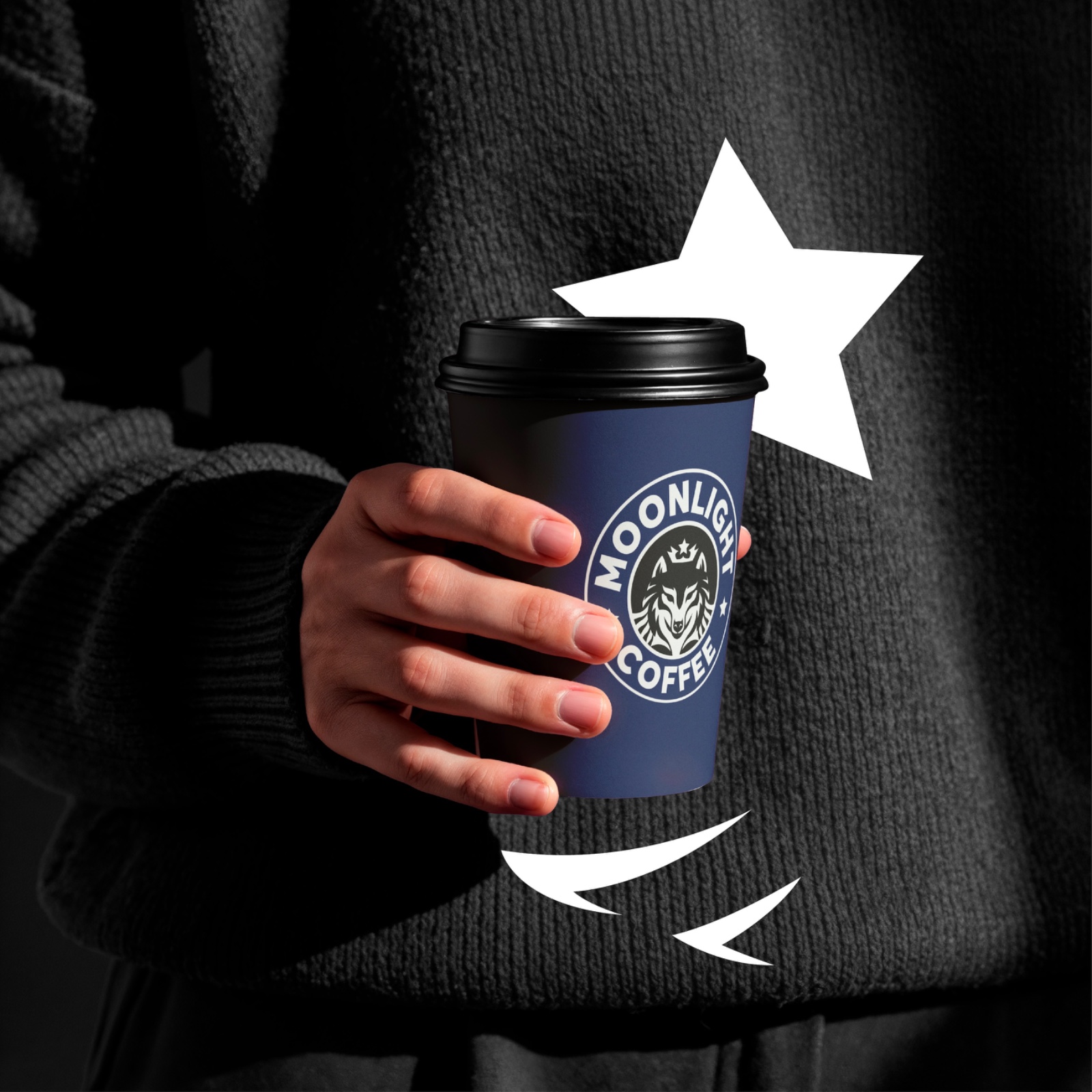 Biểu tượng chú sói dưới ánh trăng là linh hồn của Moon Coffee. Sói không gầm gừ, không phô trương, mà đứng đó, điềm tĩnh, và lặng lẽ quan sát. Đó là hình ảnh của những con người mạnh mẽ bên ngoài nhưng bên trong lại chất chứa nhiều suy nghĩ. Cái nhìn của sói trong logo Moon là để kết nối.