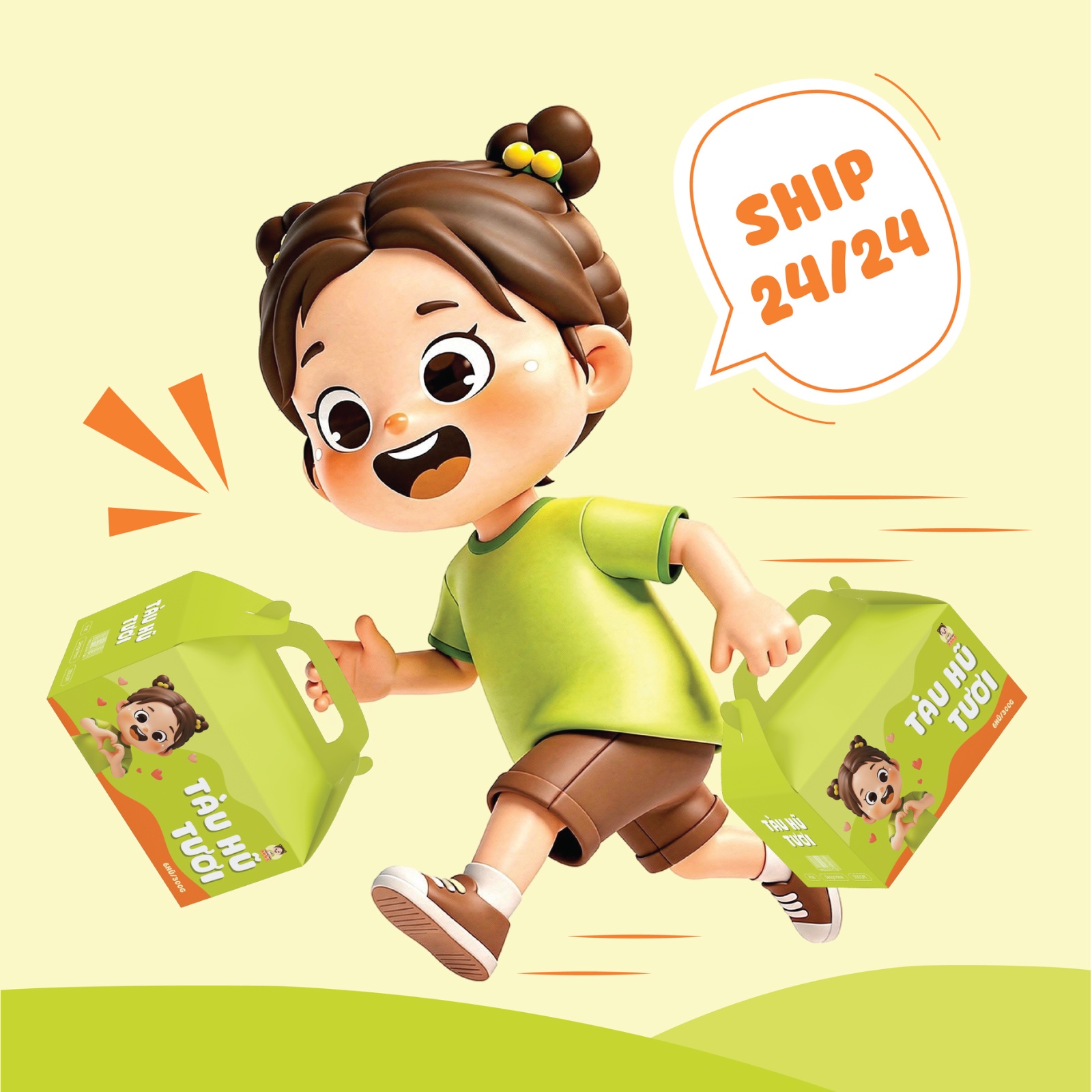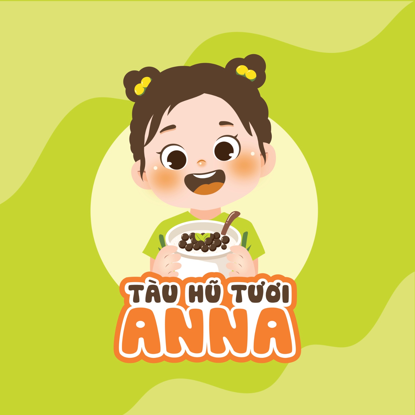 Trung tâm logo là bé gái mắt tròn long lanh, má hồng ửng nhẹ, nụ cười tươi rói như vừa xuýt xoa vì một thìa tàu hũ mát rượi. Trên tay cô bé là chén tàu hũ trắng mịn, trân châu óng ánh, chiếc thìa nghiêng nghiêng chực chờ “xúc” một miếng mềm mướt. Nhìn thôi cũng như nghe thấy tiếng “xì xụp” vang lên khe khẽ trong đầu.