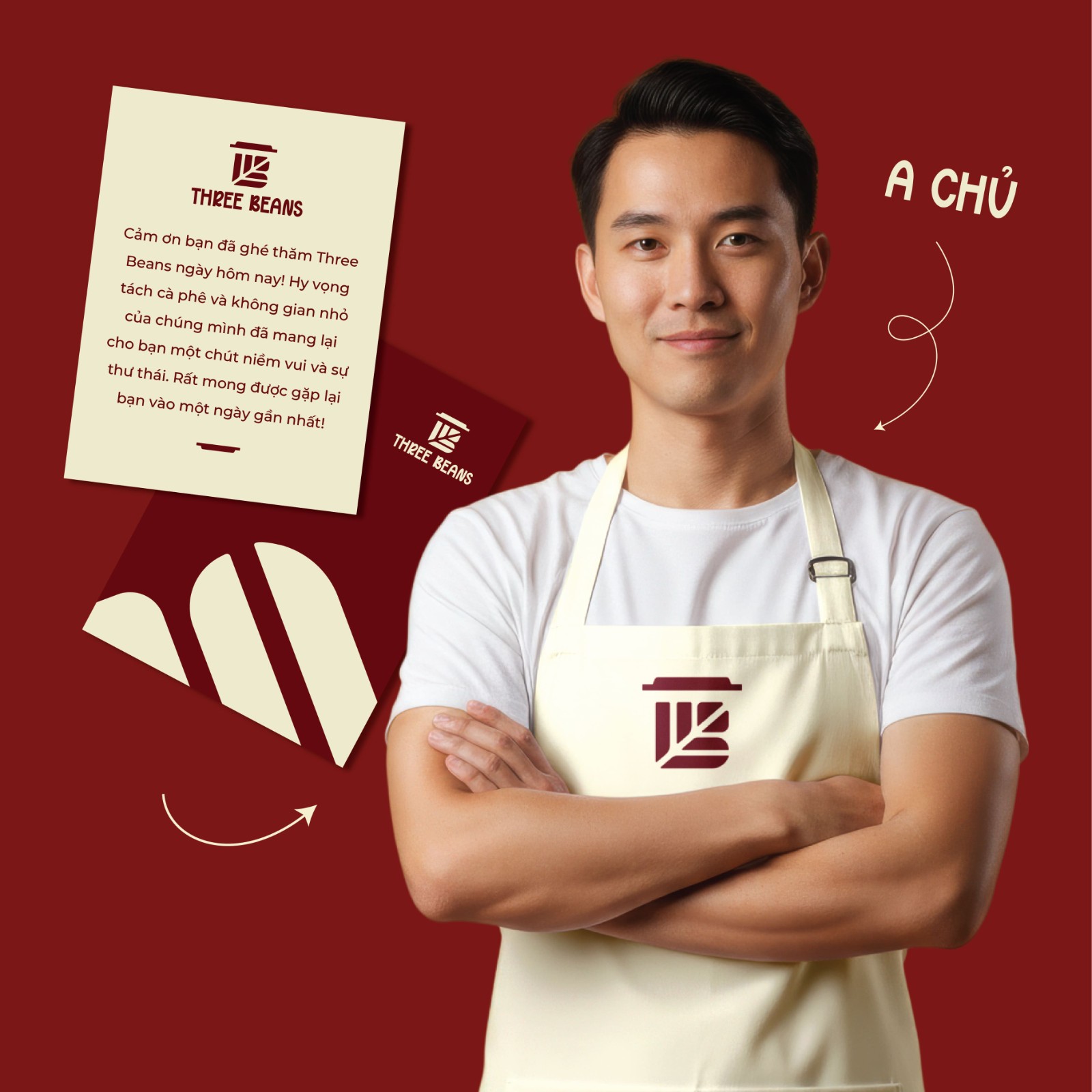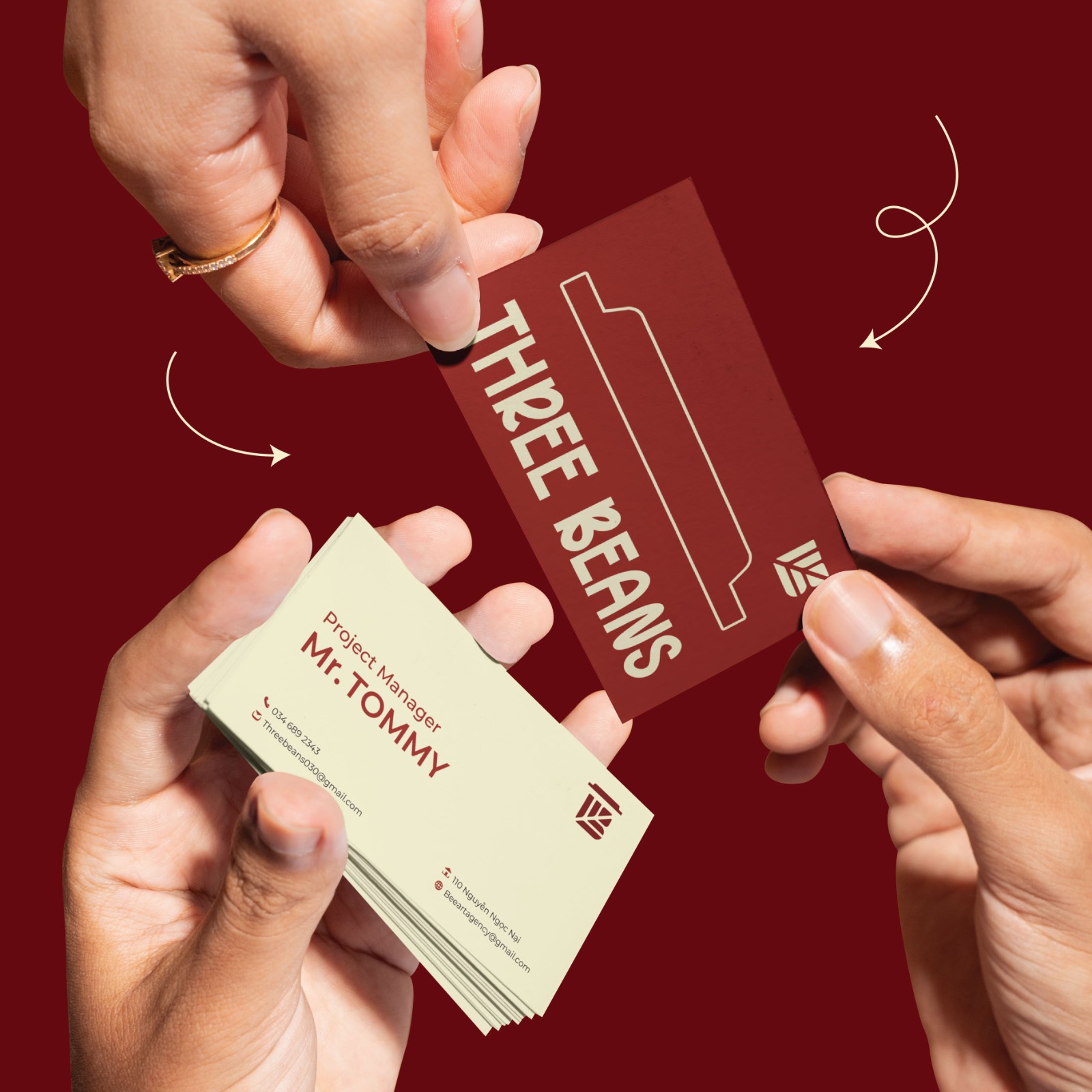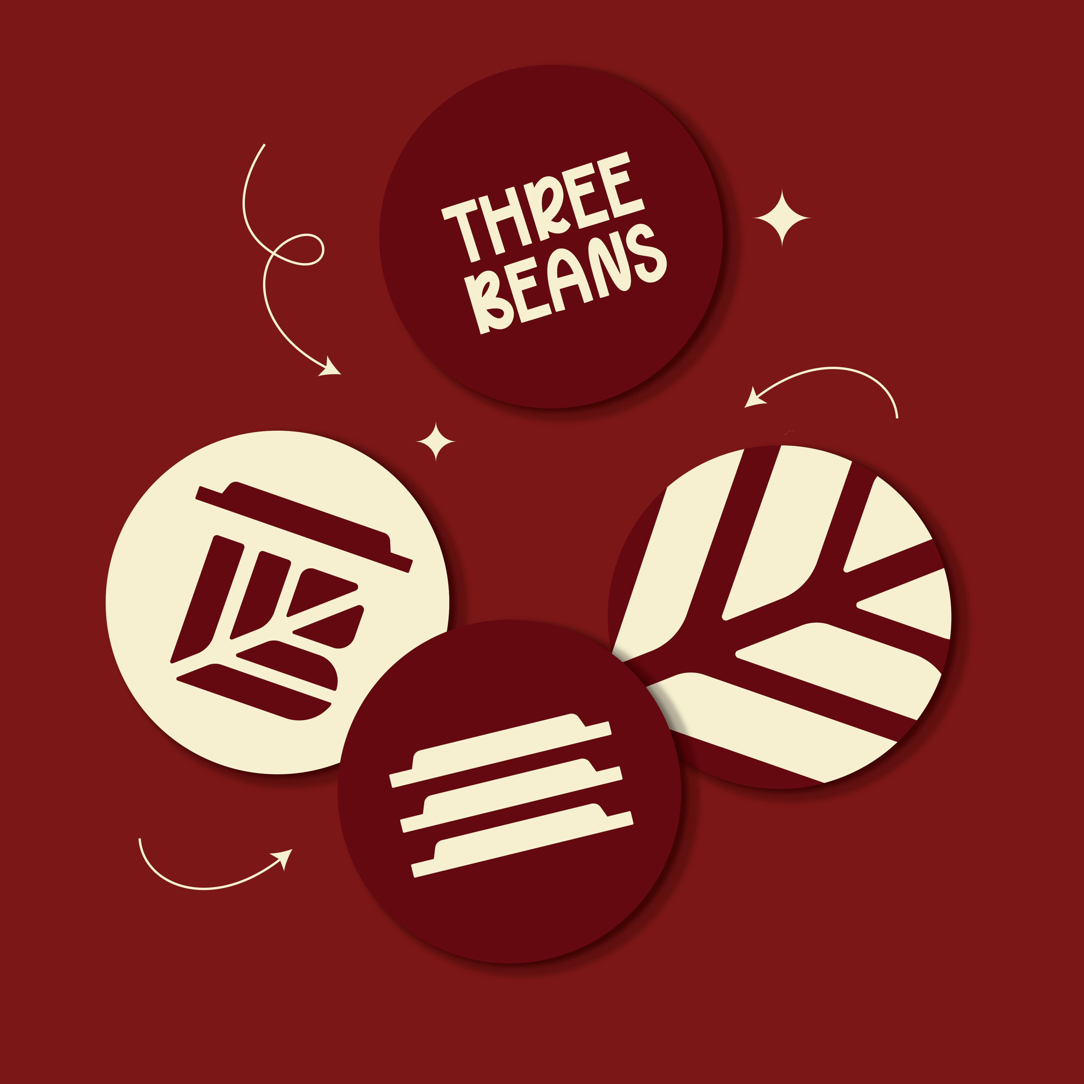 Cuối cùng, phần chữ được thiết kế dày dặn, vững chắc nhưng vẫn giữ nét mềm mại, tạo nên sự cân bằng giữa cá tính và sự thân thiện. Tổng thể không chỉ là một logo, mà là một lời mời: ghé Three Beans, thưởng thức và cảm nhận theo cách riêng của bạn.