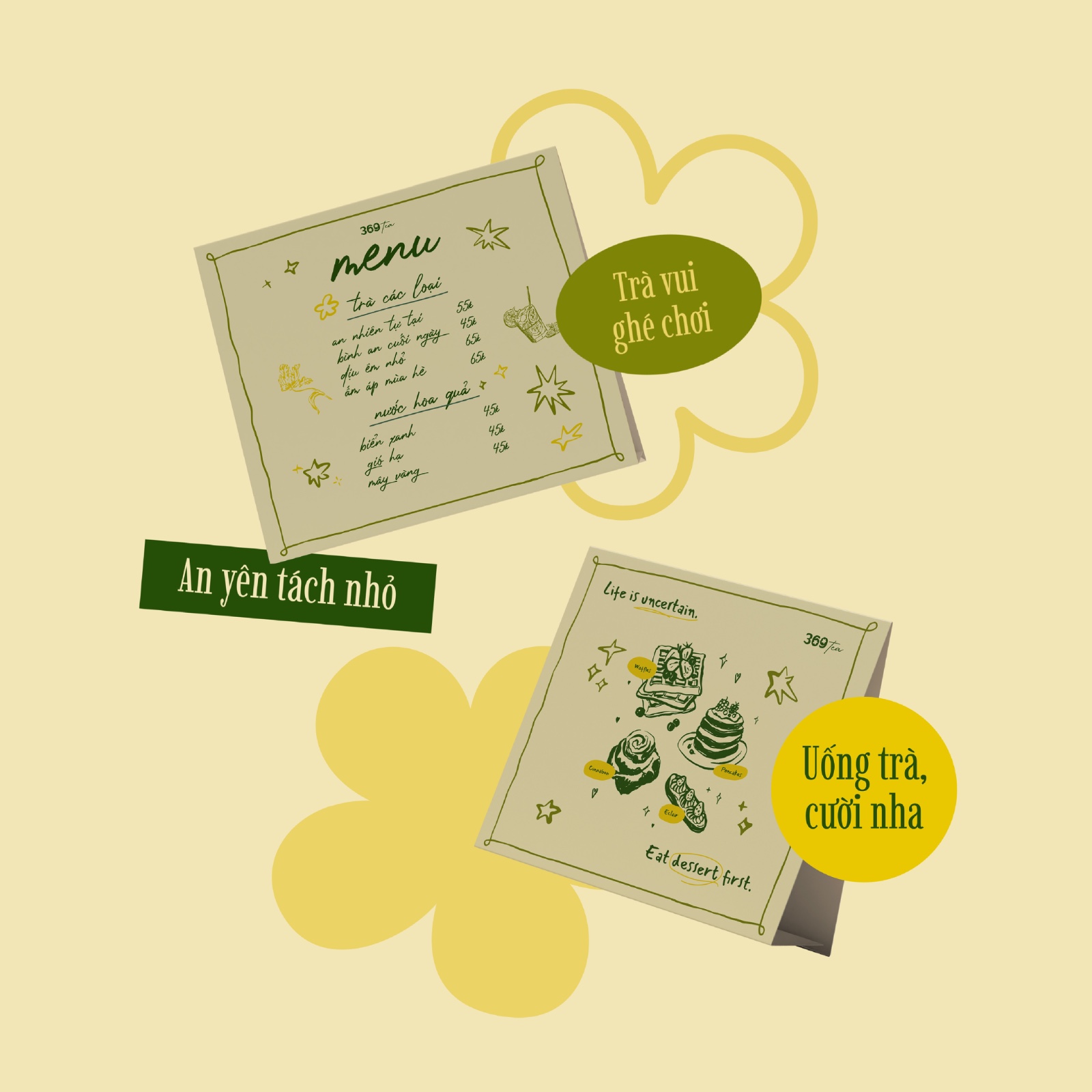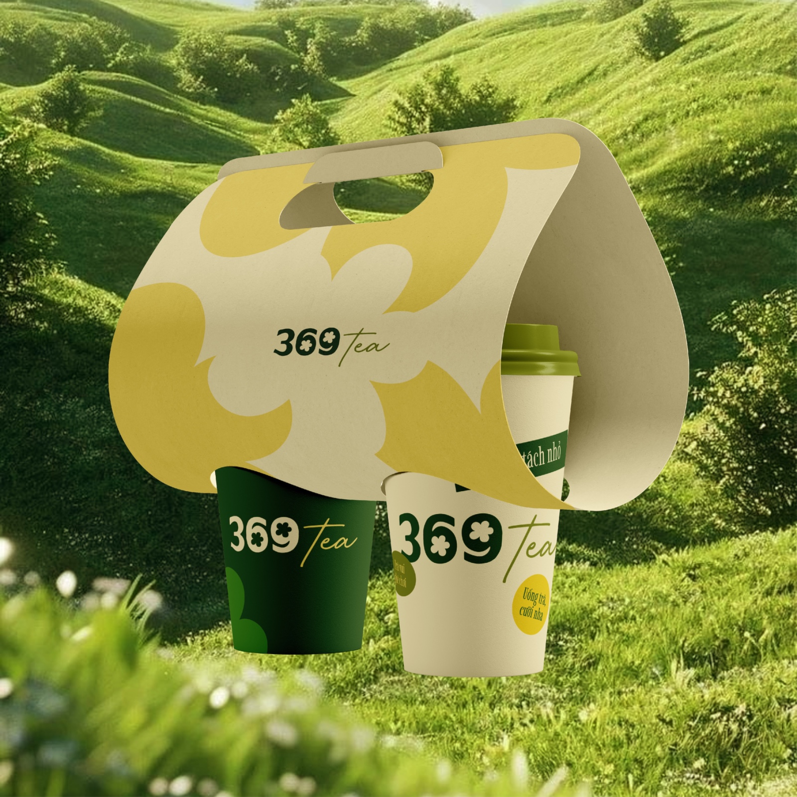➣ Chữ “tea” mềm mại như nét bút viết tay, mang đến cảm giác gần gũi, cân bằng lại sự sôi nổi của con số “369”.